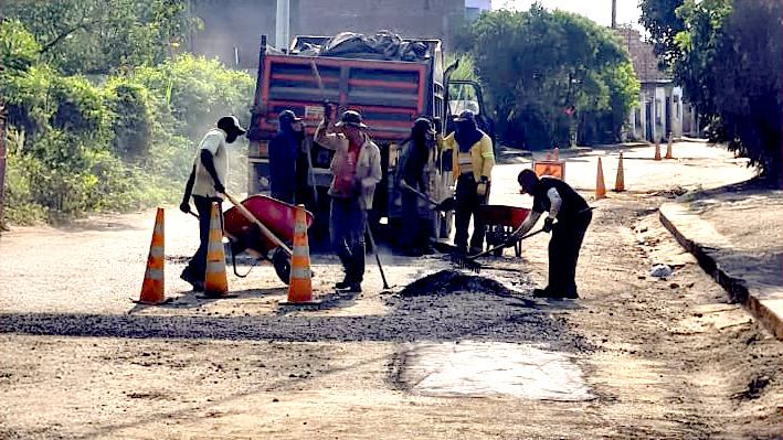 Con la ayuda de una cuadrilla, se realiza el proceso de extensión y compactación de la mezcla, para restituir la carpeta de rodamiento. Su utilización se concibe para el tratamiento de hundimientos, pequeñas áreas fracturadas y otros de severidad intermedia.